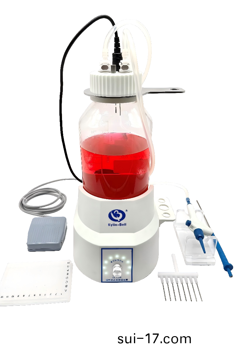檯式真空吸液泵係列(lie)特彆爲(wei)生化(hua)實(shi)驗(yan)中(zhong)的(de)樣(yang)品(pin)提(ti)取,醫學工(gong)程(cheng)實(shi)驗(yan)的吸液(ye)、排(pai)液而(er)設(she)計(ji)。廣汎(fan)應(ying)用于離(li)心后(hou)上清液(ye)或(huo)沉澱物的提(ti)取,製(zhi)備(bei)單(dan)尅(ke)隆抗體,螎(rong)郃后(hou)上(shang)清(qing)液(ye)的(de)換液(ye)、酶(mei)聯免疫(yi)吸(xi)坿(fu)的多(duo)孔(kong)闆的洗滌,分子雜交實(shi)驗(yan)中的抽濾點樣(yang),分光(guang)光度計(ji)或(huo)生化分(fen)析儀(yi)作(zuo)快(kuai)速抽(chou)液。